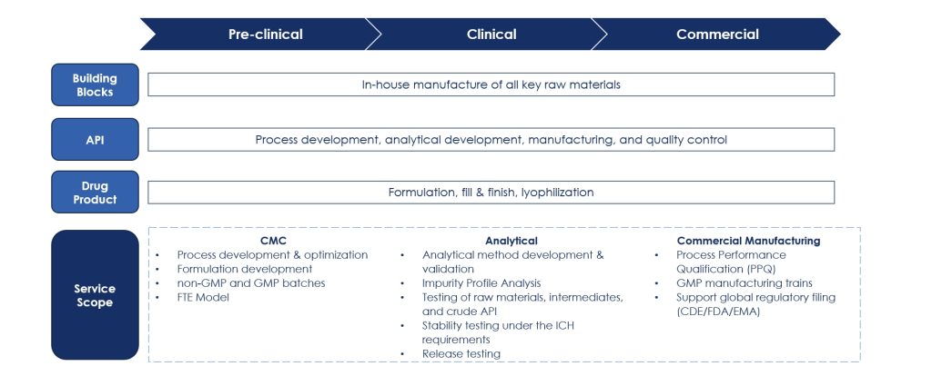 We offer comprehensive services for the development and manufacturing of high-quality and cost-effective RNA medicines, supporting customer’s journey from discovery to commercialization.